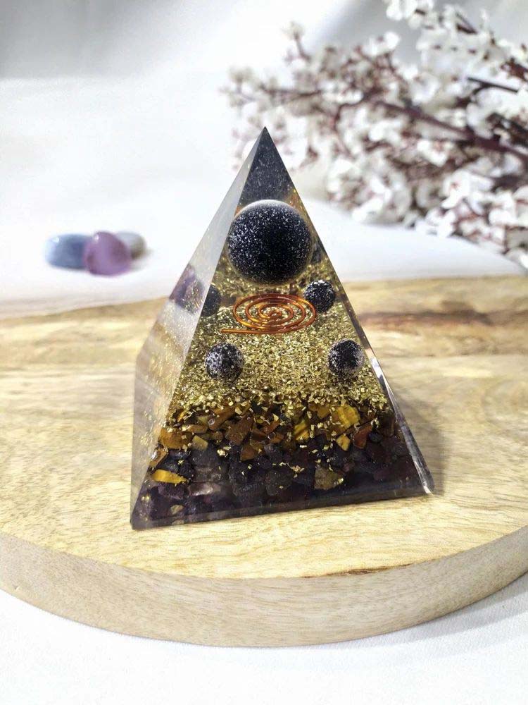 Triple Protection- Tig+Hem Orgone pyramid With Clear Quartz Crystal Pencil